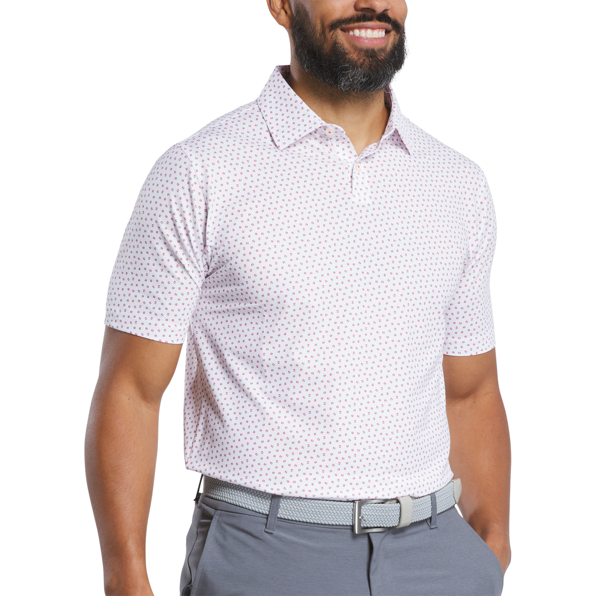 Whether it’s hot weather or a long round, the Bounce Print Stretch Pique Polo gives you comfort, mobility, and style - perfect for modern golfers looking to stand out with performance.
