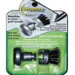 The Green Jacket Groovy Brush separates and rejoins to clip onto your golf towel.