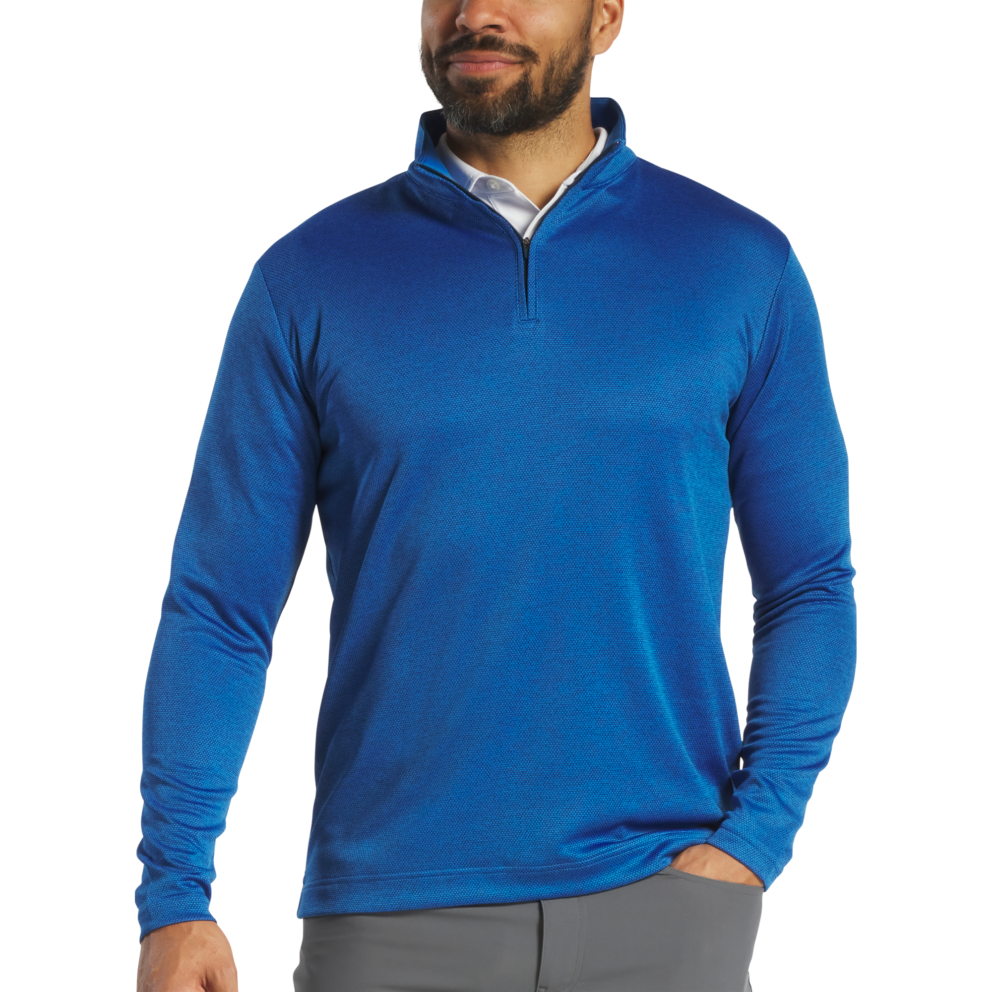The Space Dye Dot Midlayer is designed for golfers seeking both performance and style. Its moisture-wicking properties and stretch fabric ensure comfort and flexibility, while the contemporary design makes it suitable for both on-course play and casual wear.