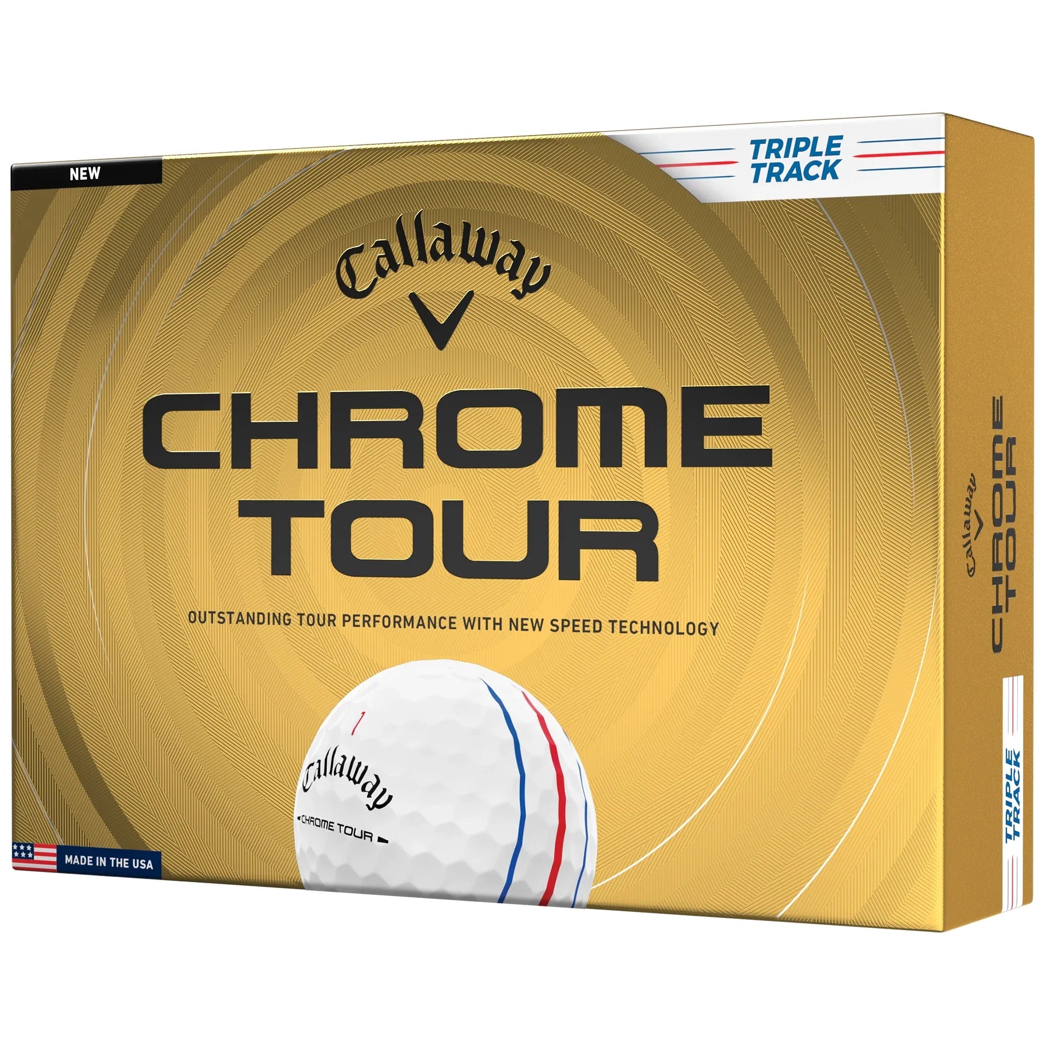 The Callaway Chrome Tour Golf Ball is built for golfers seeking outstanding tour performance with added speed and control. Featuring new speed-enhancing technology and a balanced feel, Chrome Tour delivers powerful distance with precise shot-making ability.