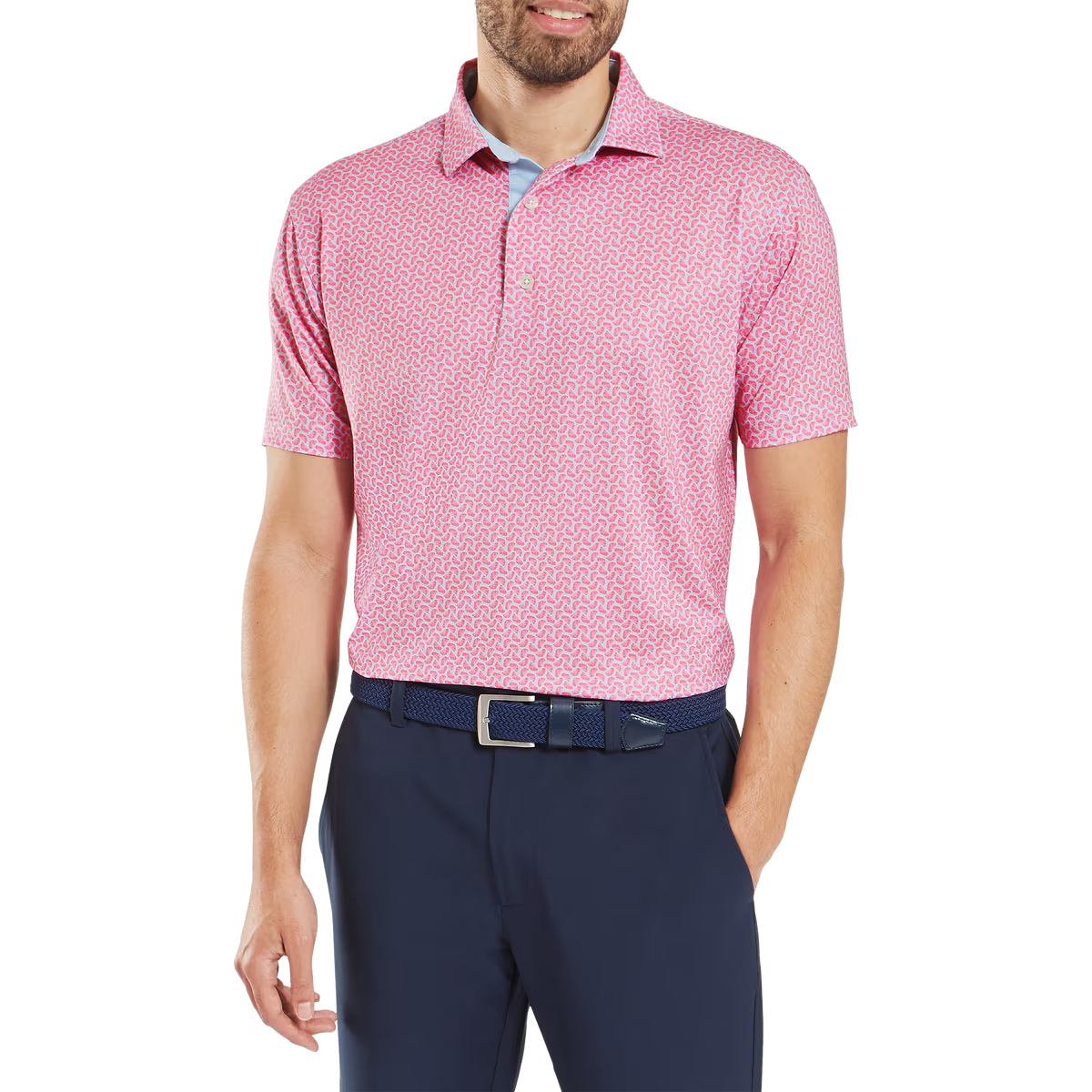 The FootJoy Citrus Print Lisle Golf Shirt combines athletic tailoring, technical fabric innovation, and standout style. Perfect for players who value performance-driven comfort and bold design, it’s a modern essential for every round.