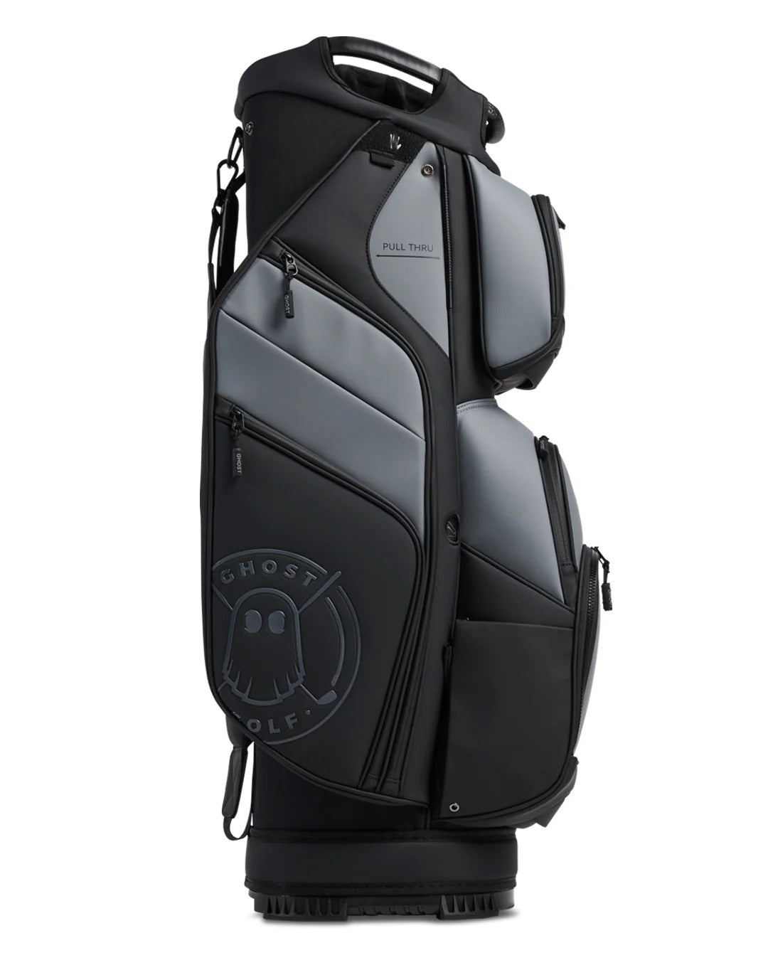 Ghost Golf GT-14 Cart Bag: 14-way velvet top, cart strap friendly design, 11 pockets including coolers, rain hood & generous storage.