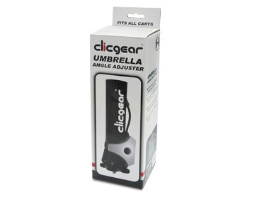 The Clicgear® Umbrella Adjuster easily adjusts the angle and direction of your cart umbrella. Raises umbrella approximately 3" higher than the standard umbrella holder and provides unlimited adjustment. The Adjuster is built of rugged fiber nylon material and uses an extra large adjustment knob for easy adjustment.